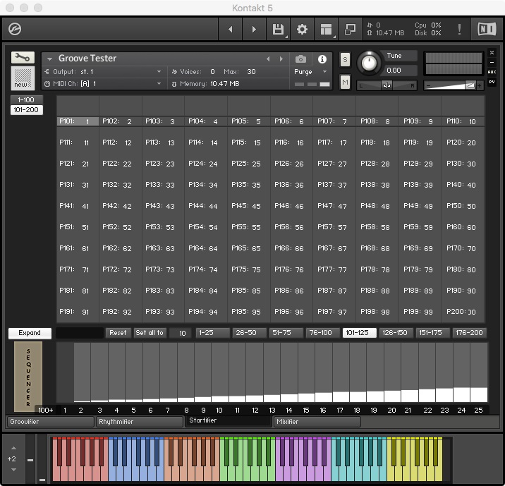 The Groovifier makes use of round-robin iteration among samples (actually, between groups) during playback. By making use of several Kontakt features, it employs dynamically recorded multi-sampled sounds for providing the user with a more realistic and musically playable experience.